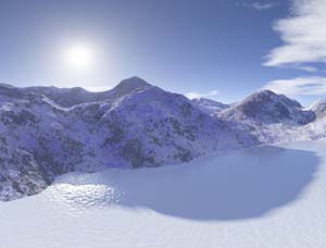 2D map made with TNTmips (generated the 2D color relief below) and Photoshop (to create the basic elevation data and blue glow)